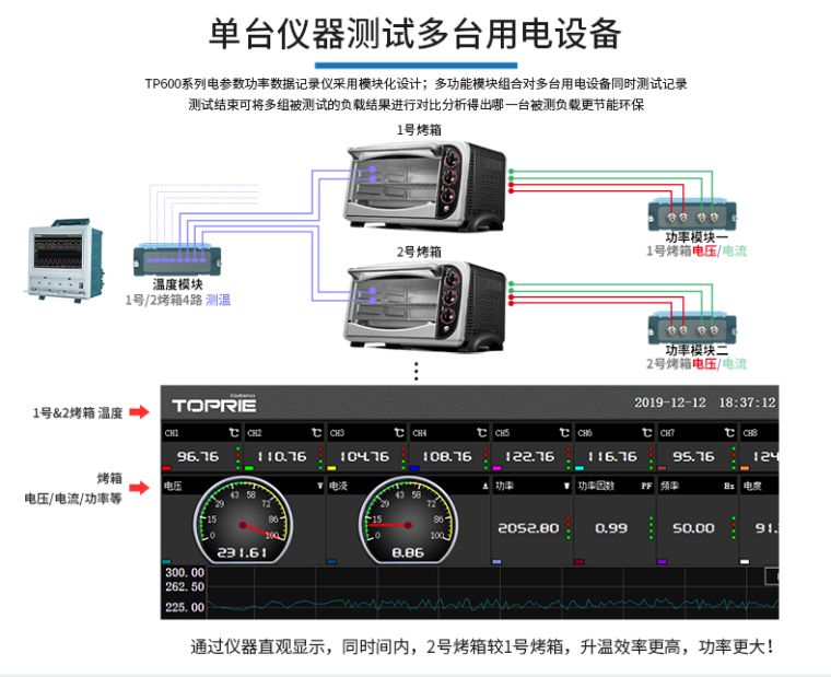 TP600电参数/温度记录仪采用模块化设计可以对多台设备同时测试记录电参数和温度,最多8组模块(电参数和温度模块任意搭配)。