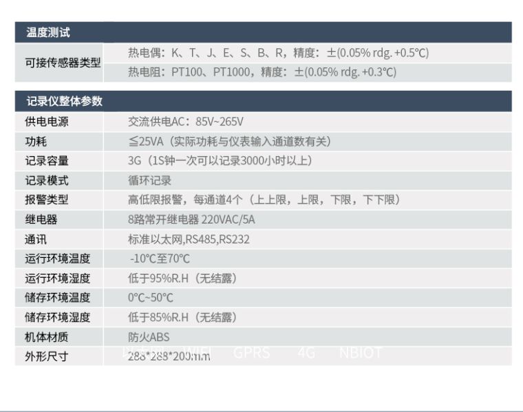 8、标配通讯:RS485、RS232、以太网、4G、WIFI支持多种通讯方式;
