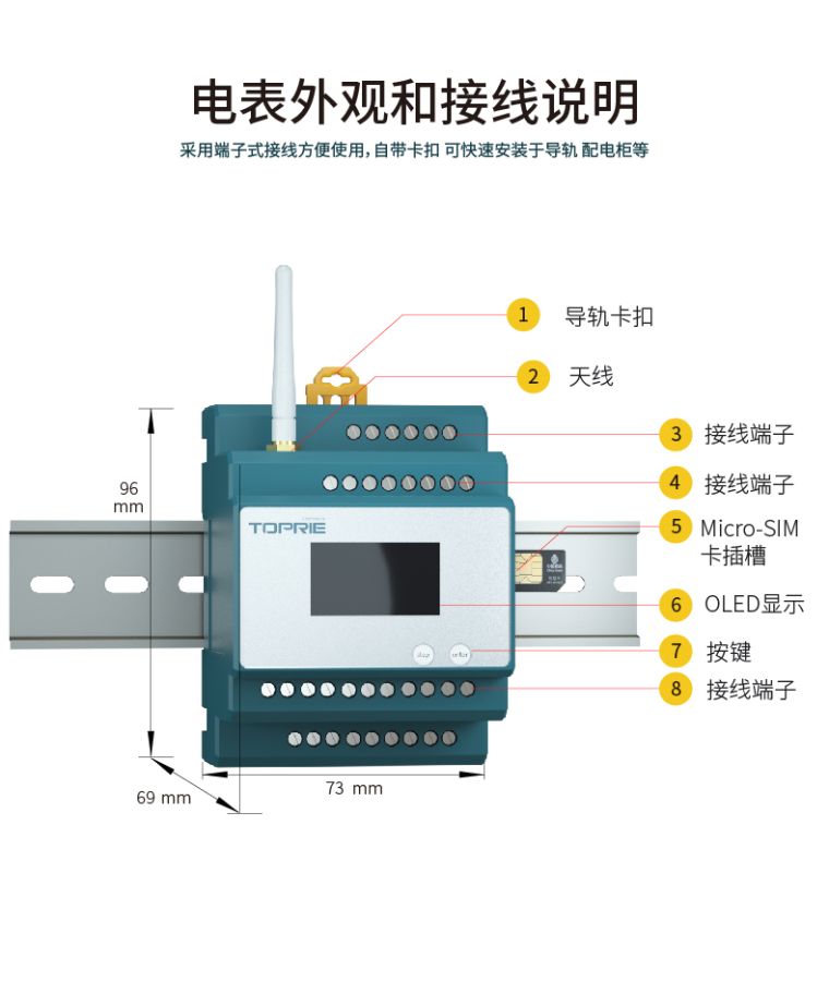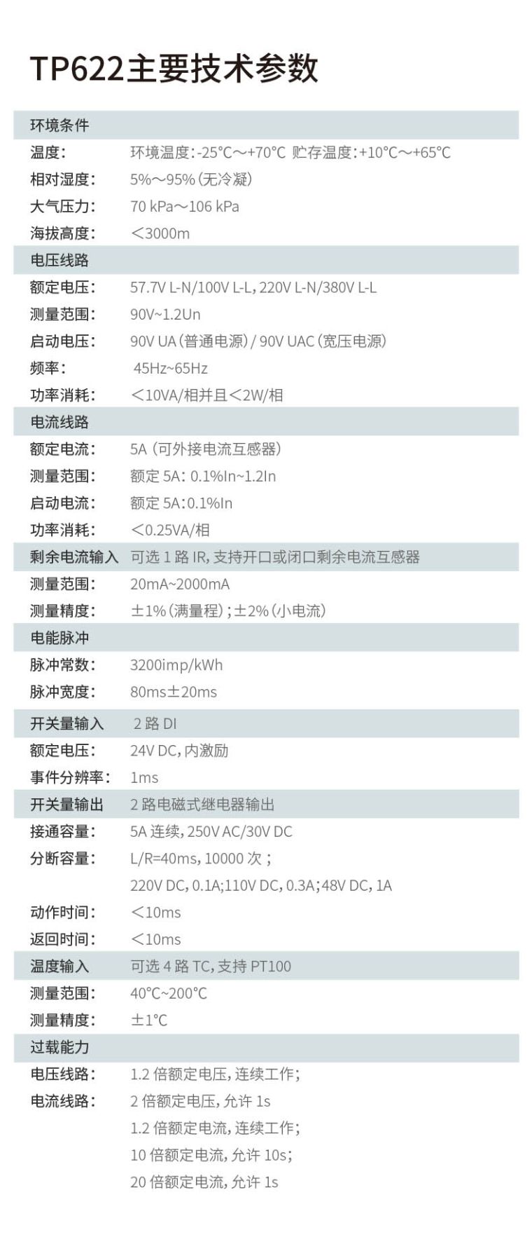 产品简介:TP622可测量电压、电流、功率、功率因数、相角、不平衡度、谐波等电参数。 实现DI、DO、测温、剩余电流测量,实现对不同区域和不同负荷的分项电能计量,统计和分析。