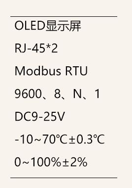 产品简介:通过RJ-45连接的温湿度采集器,0.91寸LED显示器,外形大方美观, 底部内置磁铁;8位拨码开关设置设备地址,一条总线上最多可挂接256个该设备通讯.