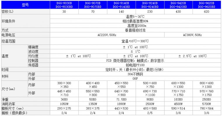 1. 立式,底部加热式,垂直强迫对流,选用进口风机,保证工作室温度均匀。