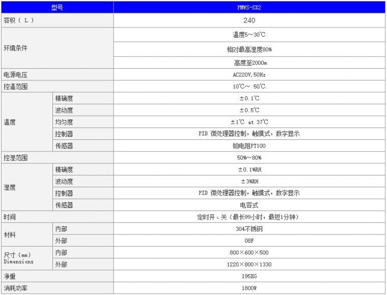 7. 采用进口湿度传感器和先进加湿技术,湿度控制精确,加湿快,湿度均匀。