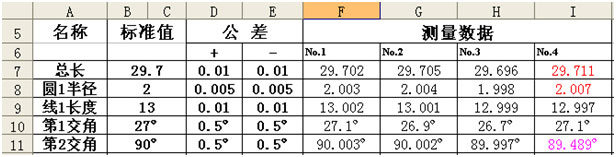 超出正公差自动以红色显示,超出负公差自动以粉红色显示。(颜色可定)
