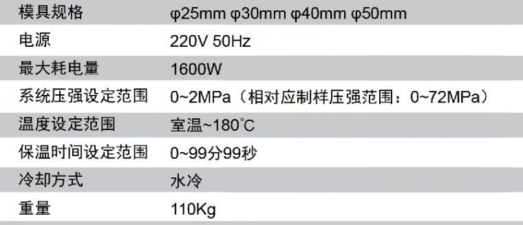 主要特点:本机属于全自动金相试样镶嵌机,具有进出水冷却的功能,适用于所有材料(热固性和热塑性)的热镶嵌,设定好加热温度、保温时间、作用力等镶嵌参数后,放入试样和镶嵌料,盖上压盖,按下工作按钮,可自动完成镶嵌工作,无需操作人员在机器旁值守。可根据不同要求的试样任意选择置换4种规格的模具,亦可同时压制二个试样,制备能力翻了一番。