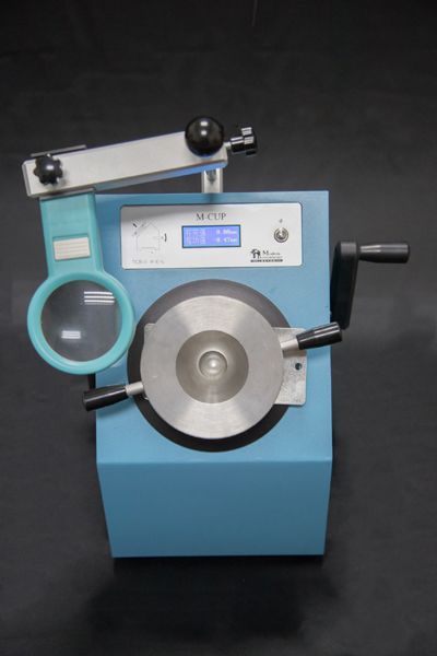 杯突仪通常用于评价色漆、清漆及其相关产品涂层在逐渐凸起变形过程中,其抗开裂或抗底材脱离的性能。TCB-II型杯突仪符合ISO 1520:2006际标准(相关的标准是GB/T 9753-2007),其原理是将试板用开孔的固定环从上压紧;然后将球形顶头以缓慢的速度从下往上顶压试板,使试板在固定环中间形成半球形凸起变形;通过放大镜目视观察凸起试板是否出现开裂或从底材脱离现象,以初始出现开裂或从底材脱离现象时的凸起高度作为评估指标。TCB-II型杯突仪操作面采用倾斜布局,便于观察;采用侧面轮式摇手升降球形顶头,操作更平稳,且可以左右换装;显示采用液晶屏,同时显示杯突值(当前大顶升值)和摇动值(用正负值指示顶头的当前位置);开机即可使用,对试板没有导电的要求,也不用每次开机校零,顶升过程中后退以后再继续顶升也是可以的。