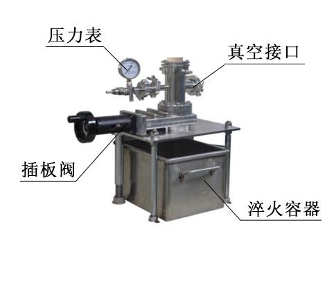 | 1.炉管底部固定有一个用于盛放淬火液体的不锈钢盒 2.炉管底部和液体盒之间安装有一个大型手动插板阀 | ||