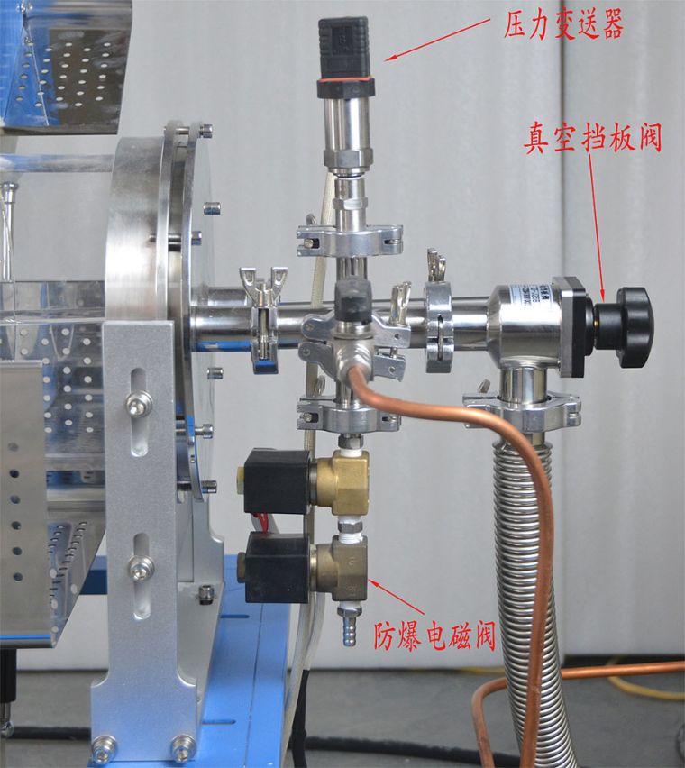 | 防爆系统由压力传感器和防爆阀组成, 压力传感器,可在压力控制表上设置报警压力,当炉管内压力大于等于设定的报警压力时,防爆电磁阀会自动启动,并放出炉管内多余的气体。 防爆电磁阀由两个方向相反的单向阀组成,无论是真空还是气氛下都可以关的很好,不漏气,不回流。