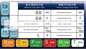 ③预置模式:可设“预置目标值”不测试件具体应力值,超预值变色报警。适于大量生产、出口类测试。多模式解决主要不同类型的检测要求,重点保证了检项,又加快了检测速度。
