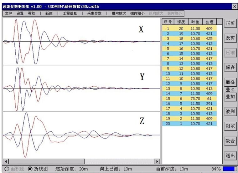 | 波形设置 | 支持每一道波速时间单击显示时间、正反向设置 |