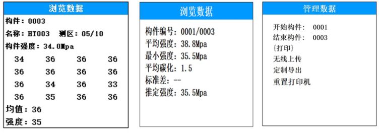 1) 自动显示并记录回弹值,并依据相关检测规范计算各测区换算强度值及构件推定强度;