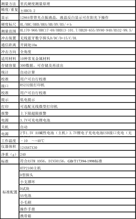HTP2100型里氏硬度计是我公司新推出的新一代硬度计。它综合了我公司十多年的硬度计开发生产经验,应用了我公司的全角度技术。该硬度计在测量时无需设置测试方向,在各个测量方向上均保证相同的测量精度,重复性±2HLD,是国际上精度***里氏硬度计之一。可以根据用户需要,增加换算的材料和硬度单位,如DL型冲击装置时,合金钢,不锈钢,铸铁等材料的换算值。