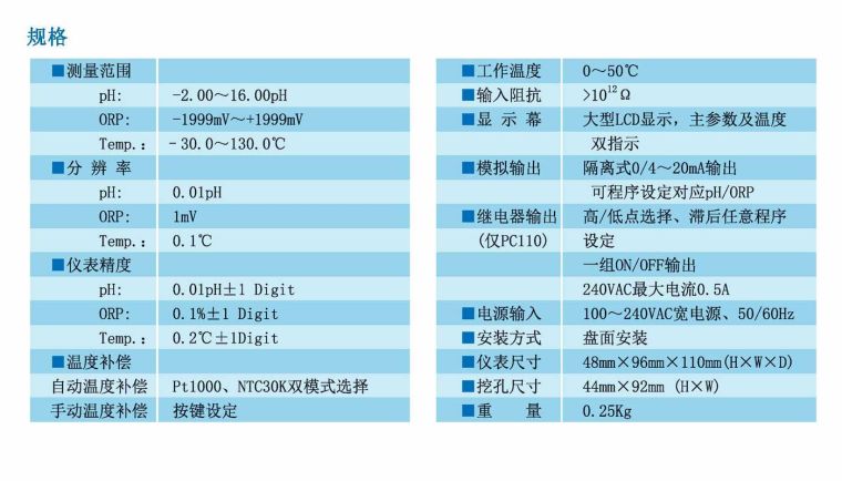 ■ 96×48微电脑设计酸碱度/氧化还原变送器