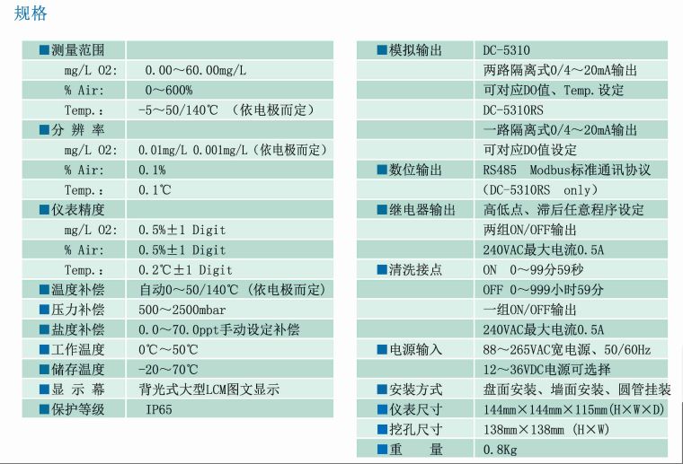 ■ 具两路0/4~20mA输出对应设定DO、Temp.(DC-5310 only)