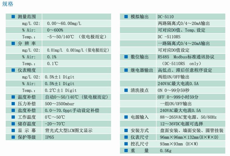 ■ 具两路0/4~20mA输出对应设定DO、Temp.(DC-5110 only)