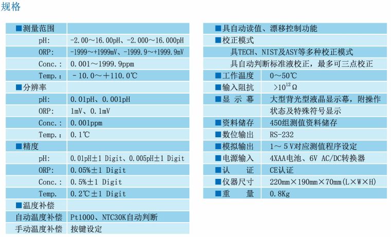 ■ 智能型微电脑设计pH/ORP/ION/Temp.测定仪