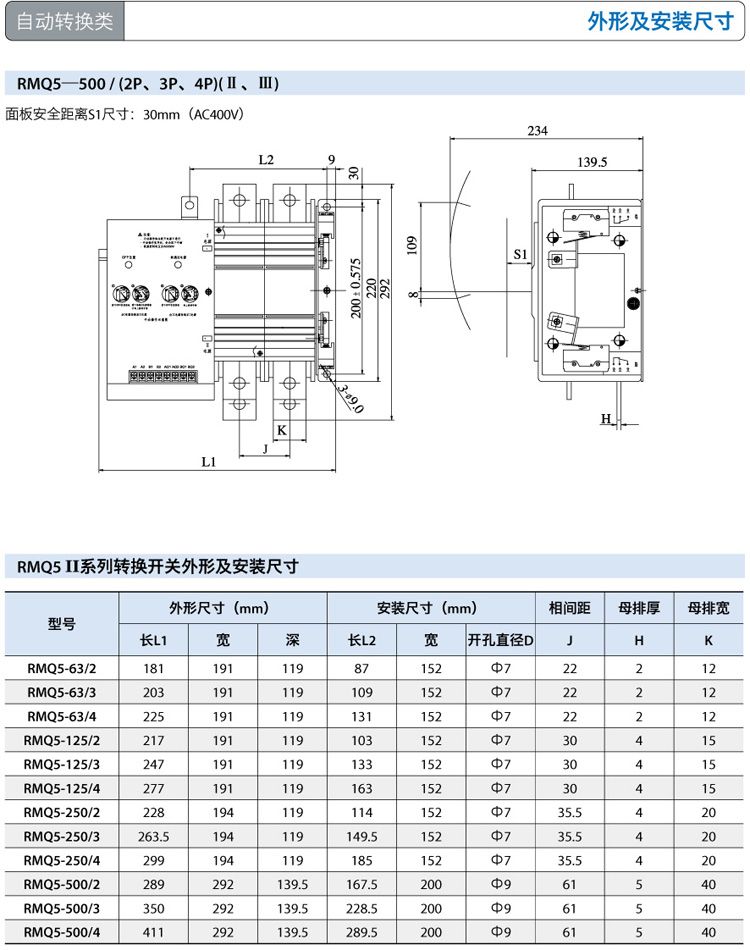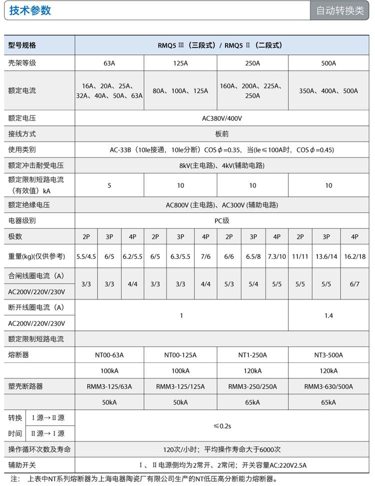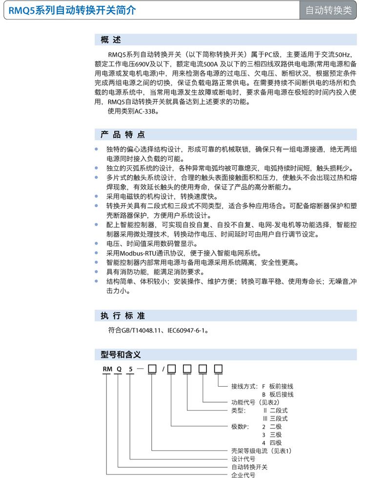 RMQ5系列自动转换开关(以下简称转换开关)属于PC级,主要适用于交流50Hz,