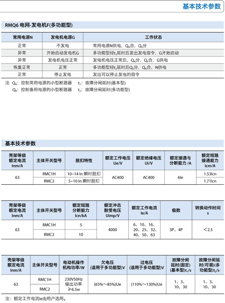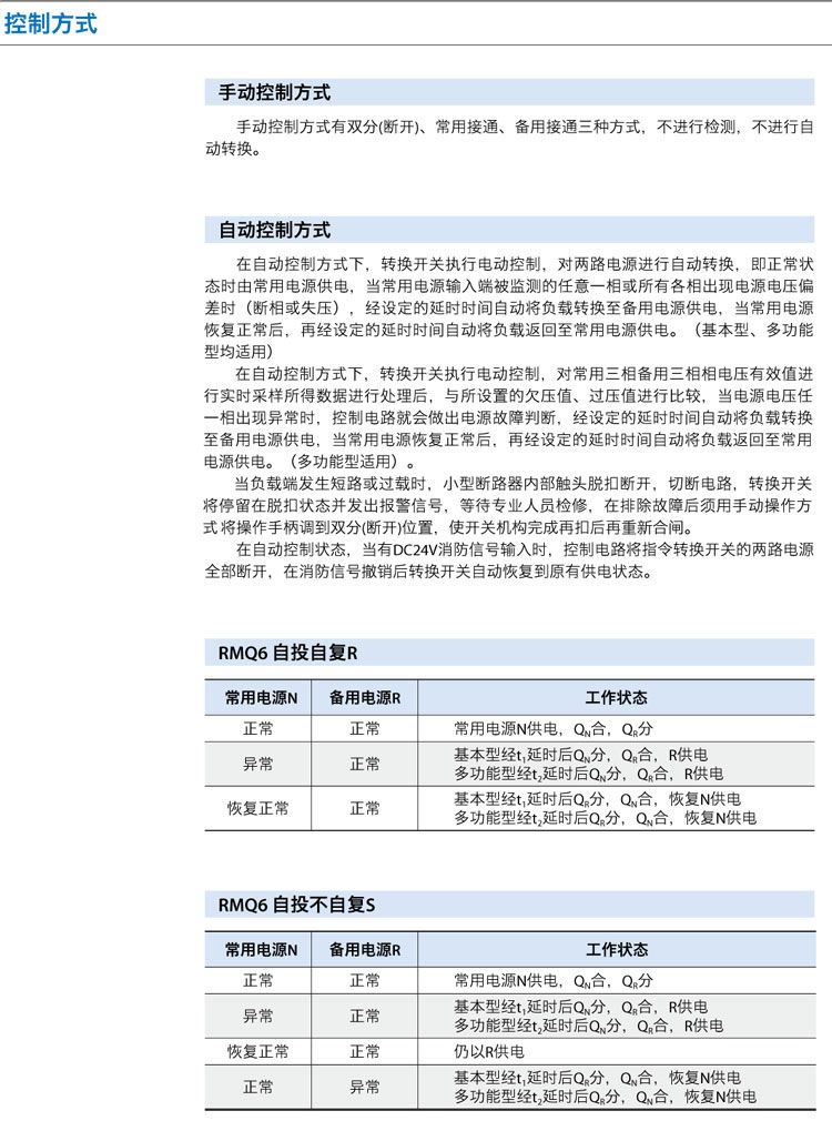场合,当常用电源发生故障时,要求备用电源在极短的时间内投入使用,RMQ6自动转换