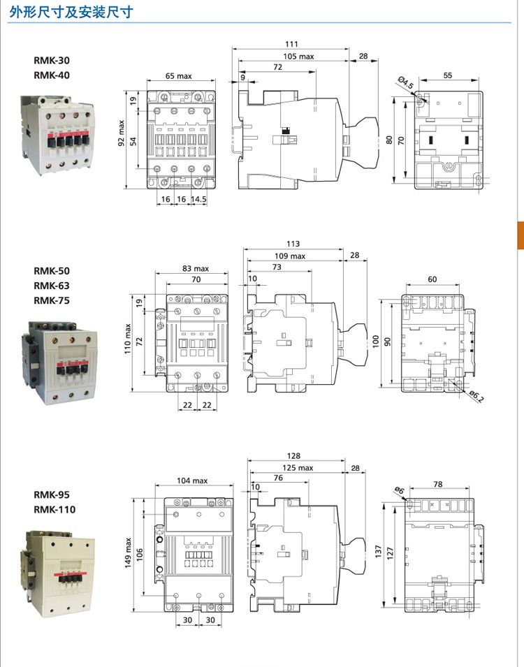 型号 RMK-6 RMK-9 RMK-12 RMK-16 RMK-25 RMK-30 RMK-40 RMK-50 RMK-63