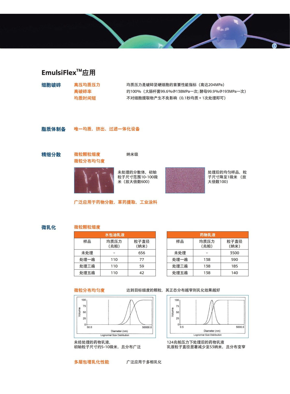 产品应用:细胞破碎、脂质体药物、乳剂的研制、悬浊液精细分散、饮料、食品等领域