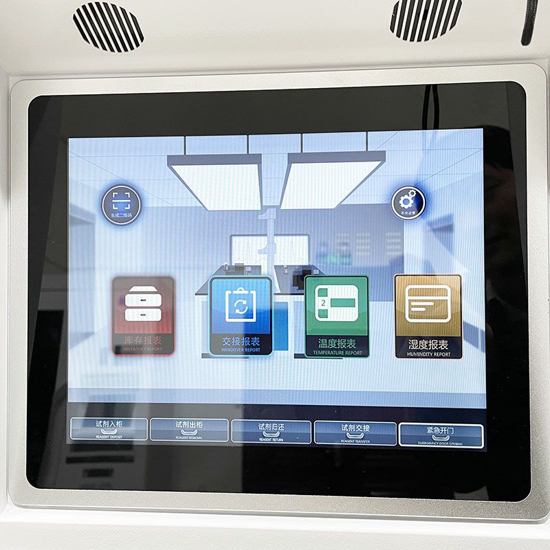 试剂出、入库自动记录,标识位置,更新储量,低于或超出设置范围即在软件界面进行预警,库存统计、筛选数据,打印、导出各式样报表。