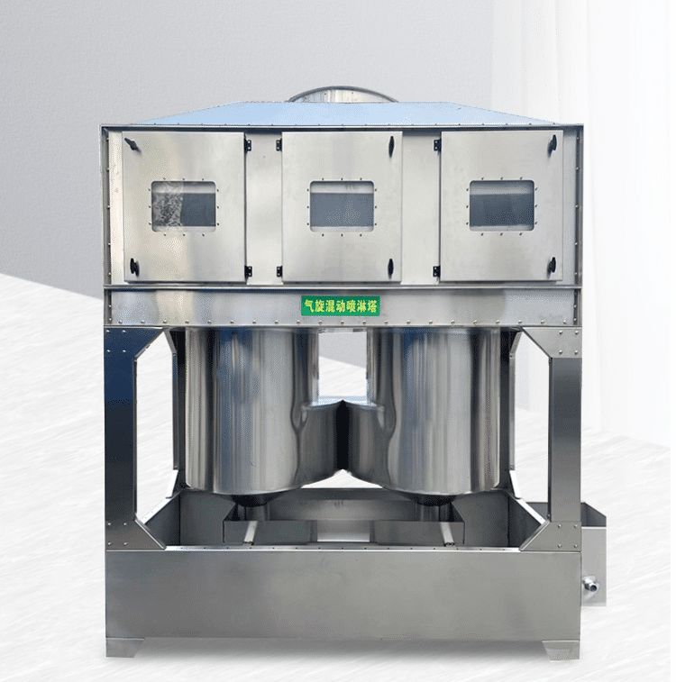 2、气旋混动喷淋塔具有阻力小、能耗省、噪声低等优点,可以处理多种粉尘和废气。