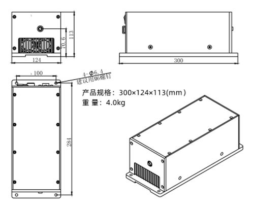功能特性:激光部分和电源一体、上位机或电脑监控、过流\过压\过温\静电保护;