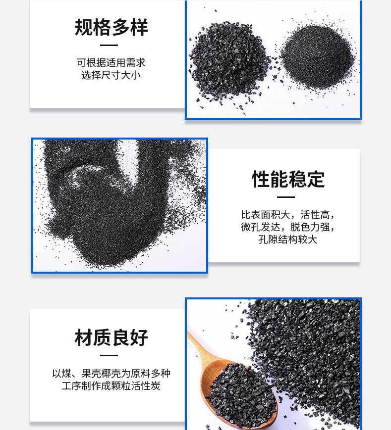 D型 原煤破碎颗粒活性炭:适合应用于电厂原水净化、自来水净化。尤其在化工污水的过滤净化处理以及电厂锅炉采用苦咸水的氯根处理方面,有很好的处理效果理。