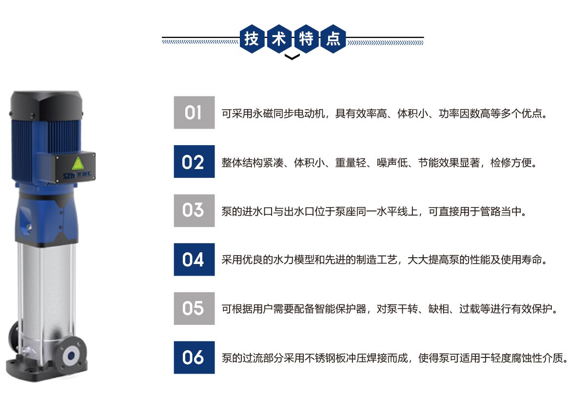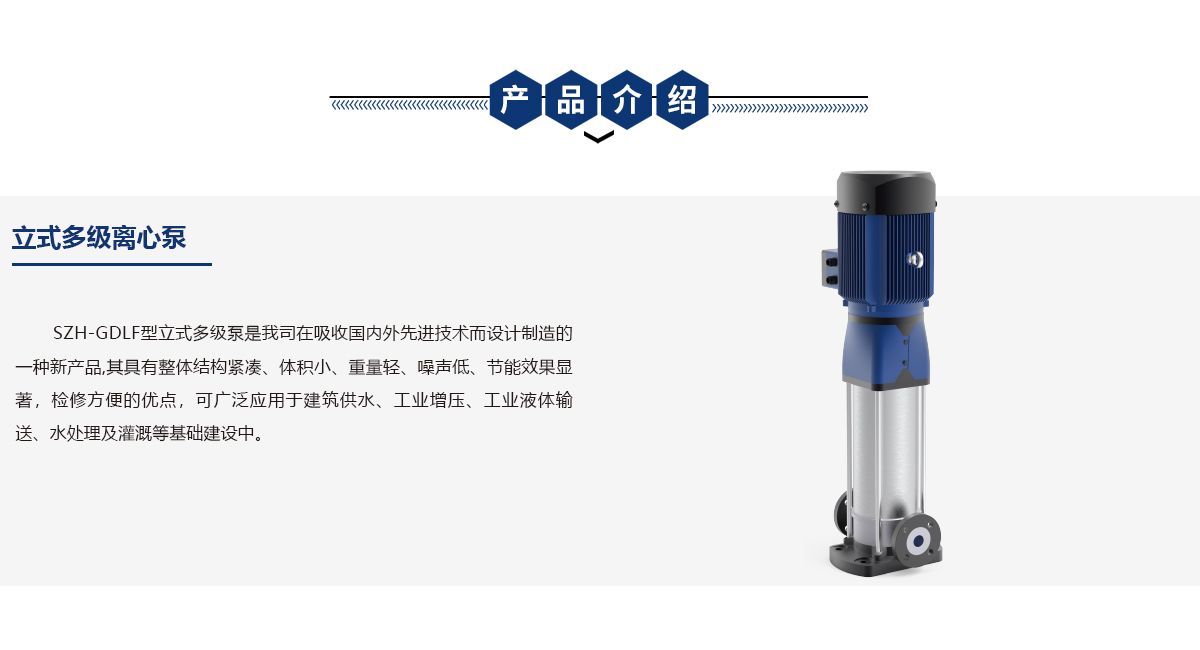 立式多级离心泵是我司在吸收国内外先进技术而设计制造的一种新产品,其具有整体结构紧凑、体积小、重量轻、噪声低、节能效果显著,检修方便的优点,可广泛应用于建筑供水、工业增压、工业液体输送、水处理及灌溉等基础建设中。