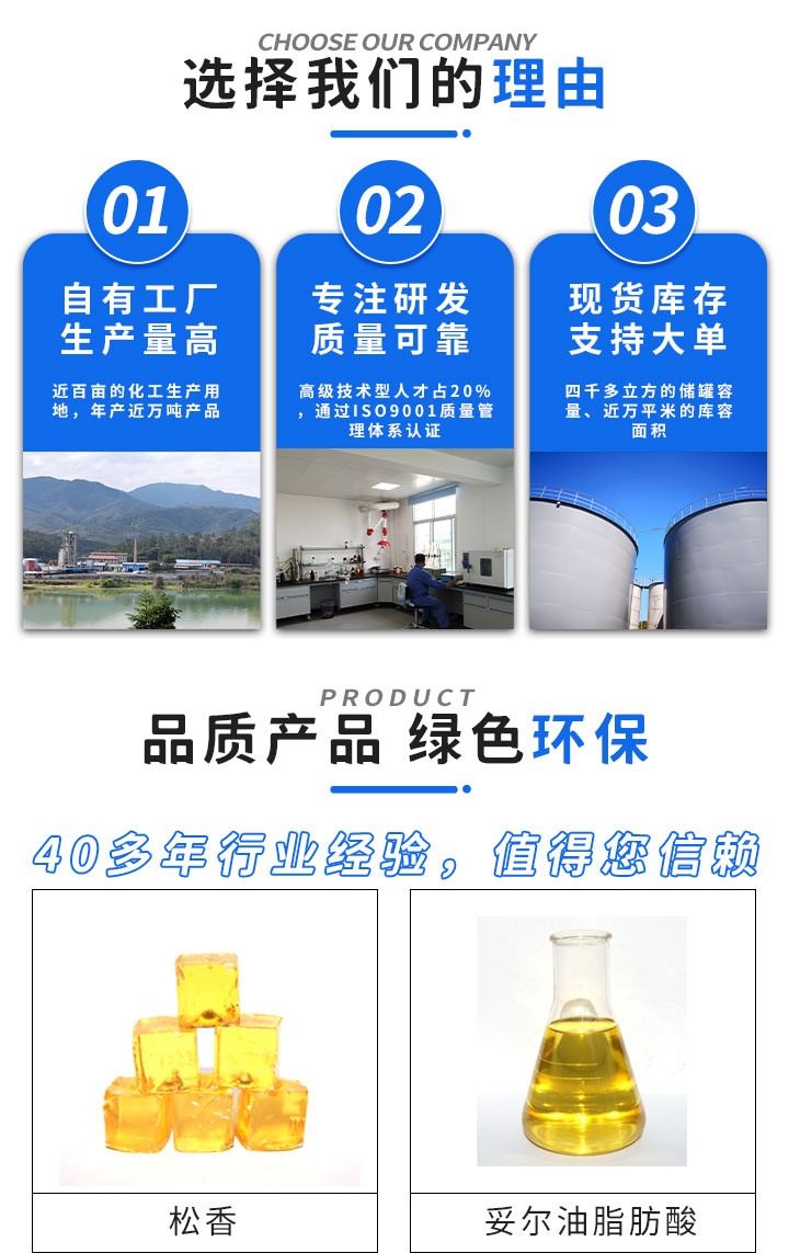 妥尔油松香的性质和用途与脂松香相近,主要用于合成树脂、酚醛树脂、油漆涂料、黑色印刷油墨、助焊剂、胶粘剂、橡胶软化剂、胶粘剂和高分子等工业。