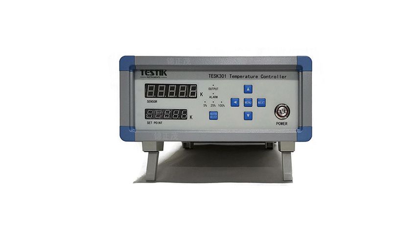 TESK301型低温控温仪是由北京锦正茂科技有限责任公司自主研发的高精度单回路低温温度控制系统,可以实现从20K-600K的温度控制输出。该温控系统具有一路传感器输入和一路加热输出功能,传感器输入和加热输出组成了一个控制回路。TESK301单通道设计能满足大部分实验室科研以及工业低温控温使用。配合适当的传感器低温度测量低至20K,高温达到600K以上,分辨率高达10mK。加热输出功率分为三档可调节,低档低至0.8W,可达80W,能满足大部分低温设备加热需求。
