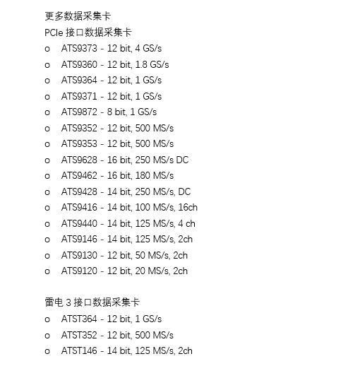 ATS9352是一款2通道、12位分辨率的高速数据采集卡,每通道采样率500MS/s。