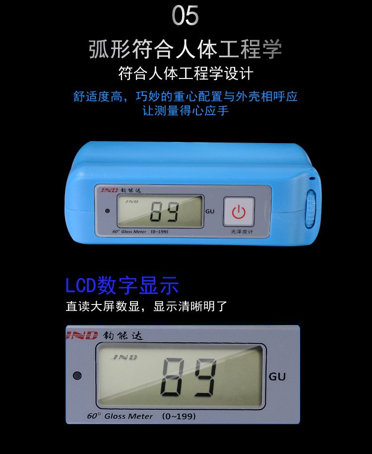 ND-S60 光泽度计是参照标准ISO 2813和GB/T13891设计制造的光泽度测量仪器.各项性能指标达到标准JJG 696《镜像光泽度计和光泽度板》计量检定规程中二级工作机要求。