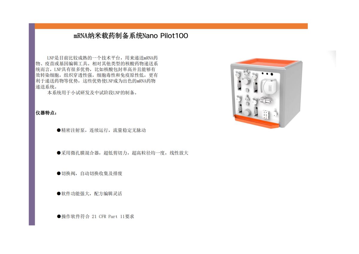 mRNA纳米载药制备系统Nano Pilot100
