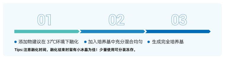 如培养体系小,建议根据实际用量将添加物分装冻存,按比例配制使用,避免反复冻融。