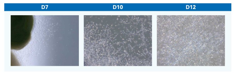 细胞最早爬出时间5-7天,镜下可以观察到少量零散细胞。