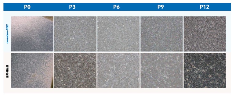 与市场同类型产品相比,具有更高的扩增效率,高代次细胞衰老较慢,能支持培养20代以上。