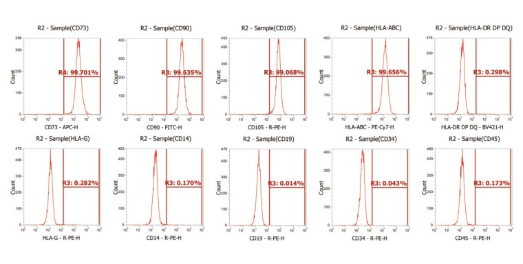 CD73、CD90、CD105、HLA-ABC阳性率≥95.0%。