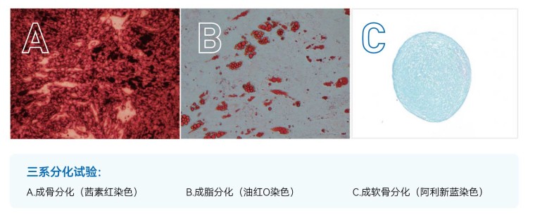可用于多种来源的间充质干细胞的原代细胞分离及传代培养,如:脐带(UCMSCs)、脂肪(ADSCs)、骨髓(BMSCs)、羊膜(AMSCs)、毛囊(HFSCs)、牙髓(DPSCs)等, 并保持细胞多向分化的潜能。