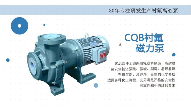 CQB-F氟塑料磁力泵泵室完全封闭,通过磁力偶合器间接驱动叶轮工作,取消了轴封,达到了无泄漏、无污染的工况要求。用途:可以安全输送强酸、强碱、剧毒、有机溶剂、及纯净、贵重的化学介质,适用于各种化工流程,充分满足严格的安全性、可靠性和生态环保要求。流量范围:0.6T/h-100T/h,扬程范围:2m-50m,功率范围:0.025kw-30kw,运行温度:-20℃—150℃。可根据实际工况要求变更配置
