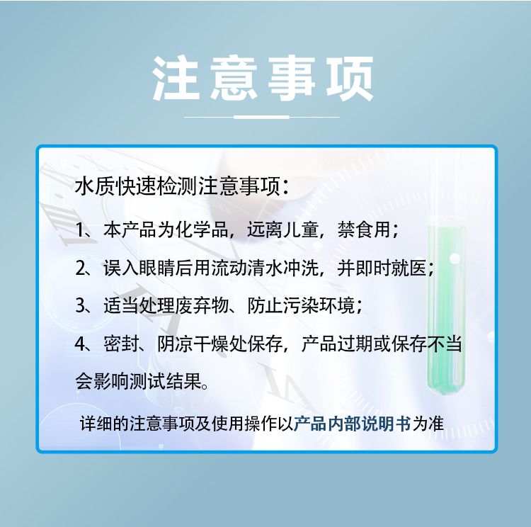 1、本产品使用少量化学药品,使用前请认真阅读说明书;