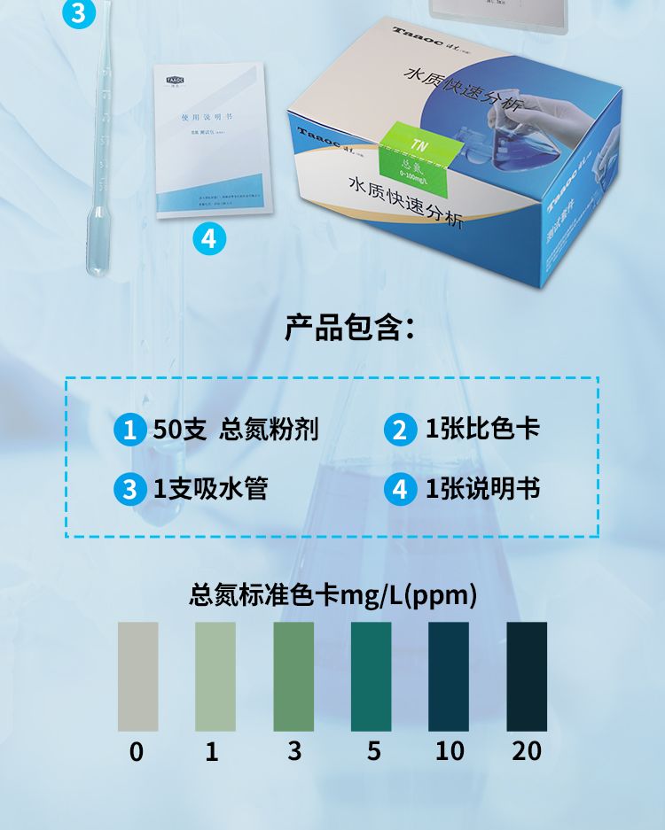 涛克总氮水质快速检测包可快速测定水中的总氮含量,小巧、便捷,便于携带,无论您是在生产现场进行快速测定,还是在户外进行快速排查,测试包均能满足您的水质检测使用需求。测试包集成了水质分析领域成熟技术,整个操作流程简单、快速,检测结果稳定可靠。产品符合国家标准、轻巧便携,随时随地操作,检测仅需约几分钟时间,可快速得出结果,整体投入小,成本实惠。