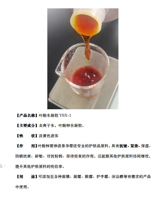 叶酸锌营养液是北大研发的一款新型的活性护肤原料,叶酸对DNA合成、细胞新陈代谢等生理过程具有极强的促进作用,可促进DNA断链再次结合,从而有效修复因紫外线造成的皮肤损伤。