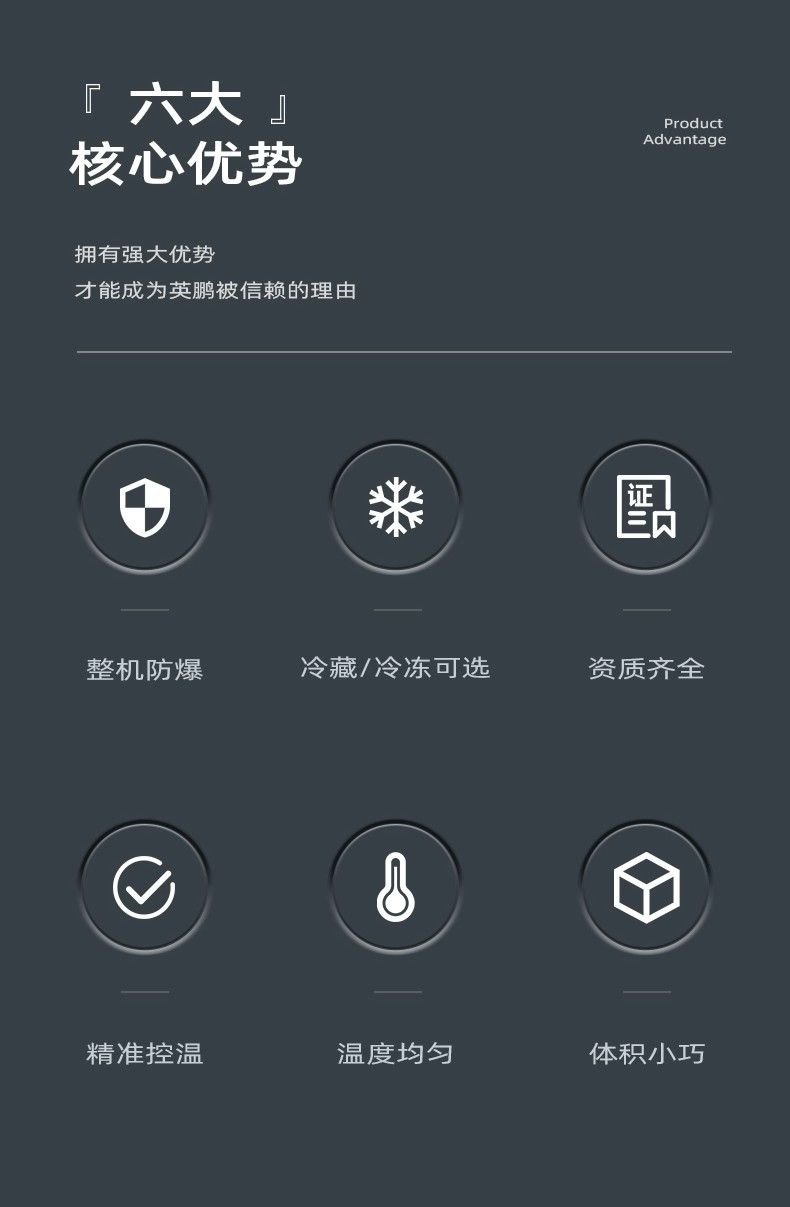 六种核心优势:整机防爆、冷藏/冷冻可选、资质齐全、控温准、温度均匀、体积小巧
