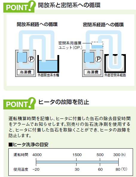 产品代码No.:204890冷却·循环方式:空冷·开放式循环温度调节范围:-20~80℃温度调节精度:±0.1℃冷却能力(at液温):360W(10℃ )、230W(-10℃)外部循环能力(50/60Hz):最大流量15/15.5L/min、最大扬程4.5/6m(吐出压:0.045MPa)加热器:700W(SUS 316L)冷冻机·冷媒:空冷式输出300W·R134a循环泵:自吸式循环泵 60/80W(自吸高度2m)冷却盘管:SUS 304循环接咀:出水口、回水口 外径16.5mm管口水槽容量·材质:约1.5L·SUS304外部尺寸:324Wx397(437)Dx482(502)H重量:约44kg电源:13A、AC100V、1..3kVA、50/60Hz产品特点
