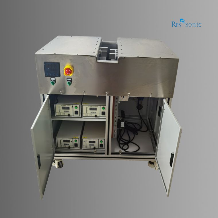 超声波搪锡设备适用于铝母线端部搪锡,电子引脚焊接,铝铜接头焊接,可以减少和避免铜铝搭接处产生的电腐蚀作用. 整套的超声波搪锡设备由超声波发生器,换能器,变幅杆,锡槽组成。