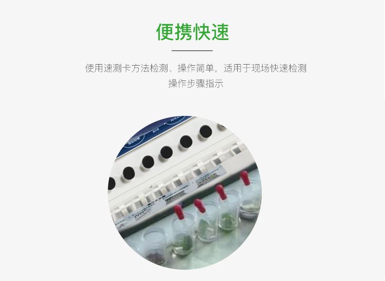 主要用于果、蔬、茶、粮食、水及土壤中有机磷和氨基甲酸酯类农药的快速检测,特别适用于农产品质量检测站的快速检测;果蔬生产基地和专业户采摘前田间地头检测;农贸批发销售市场现场检测;酒楼、食堂、家庭果蔬、茶叶加工前的安全检测。
