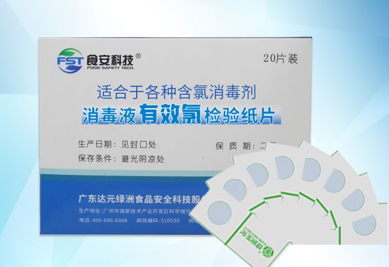 本公司研制生产的消毒液有效氯检验试纸,适用于检测各种含氯消毒剂配制的消毒液中有效氯的浓度,检测范围是10-300mg/kg,使用方法非常简单,只需将试纸浸入消毒液中,马上就可以显示出深浅不同的蓝色,参照标准比色板即可确定有效氯含量,效果可靠。非常适用于卫生防疫部门进行现场监督和检查使用,也可以供企业自检使用。