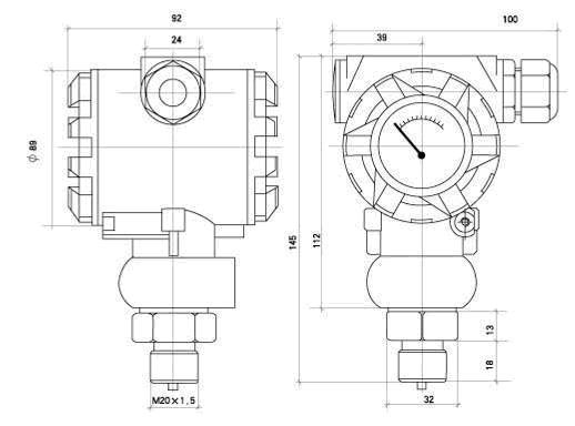 测量介质 | 气体、液体、油等与316兼容的介质 | 测量形式及范围 | 表压(G)-最大(0~60)MPa, 最小(0~0.5)KPa | 绝压(A)-最大(0~40)MPa, 最小 (0~5)KPa | 负压(B)- (-0.1~40)MPa, 最小(-0.2~0.2 )KPa | 精度等级 | 0.1、 0.25、 0.5 | 过载能力 | 量程的2~5倍 | 长期稳定性 | 小于0.25%FS/年,小于0.5%FS/年 | 供电电源 | 15~36 VDC(标定电压24VDC) | 输出信 | (4~20)mA(二/三/四线制)、(0~10/20)mA (0~5)V、(1~5)V、(0~10)V | 显示方式 | 指针表头或数字显示可选配 | 校准 | 通过调节精密电位器实现对零点、量程调节 工作温度:(-40~80)℃ 补偿温度:(-20~70)℃ | 工作温度 | -40~80℃ 补偿温度:-20~70 ℃ | 过程连接 | M20×1.5外螺纹(Ф3内孔)或用户注明 | 隔离膜片材料 | 316 不锈钢 | 传感器接口材料 | 1Cr18Ni9Ti | 外壳材料 | 合金铝 | 防护等级 | IP65 |