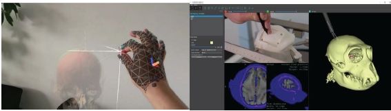 软件平台根据CT、MRI或fMRI等放射学成像数据,为手术对象创建精确的“数字影像”。可在 几分钟内精准完成皮肤、骨骼和大脑的导航定位。 HoloDeck将手术对象解剖结构进行投影以便观察和调整手术计划。