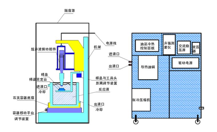 本公司生产的大功率振动式超声波气蚀系统是严格按照美国材料试验协会ASTM G32-06标准设计制造,并已经将其用于新材料研发工作。通过此标准所测得的样品气蚀率客观、可靠,并可与同类样品进行比较。本套系统是通过大功率超声波作用于样品,模拟样品与液体接触面的气蚀现象,进而可对材料的抗气蚀性进行分析。